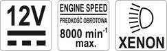 - Display engine speed up to 9,000 RPM, and ignition spark advance from 0-90º