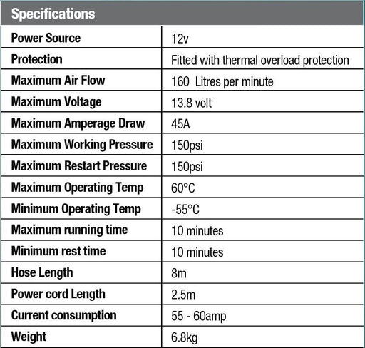 FISHER DISCOUNTThe perfect compressor for high speed, high capacity tyre inflating on 4WD’s, trucks, machinery, cars & more Rapid 160LPM filling design makes...