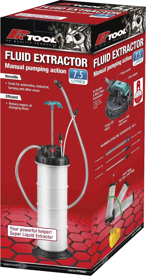 PK Tool Oil & Fluid Extractor 7-1/2Ltr Manual Pumping Action - T-Handle Action