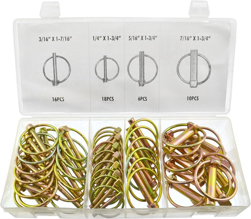 PK TOOL 50pc Lynch Pin (Linchpin) Locking Pin Clip Assortment Set For Trailers