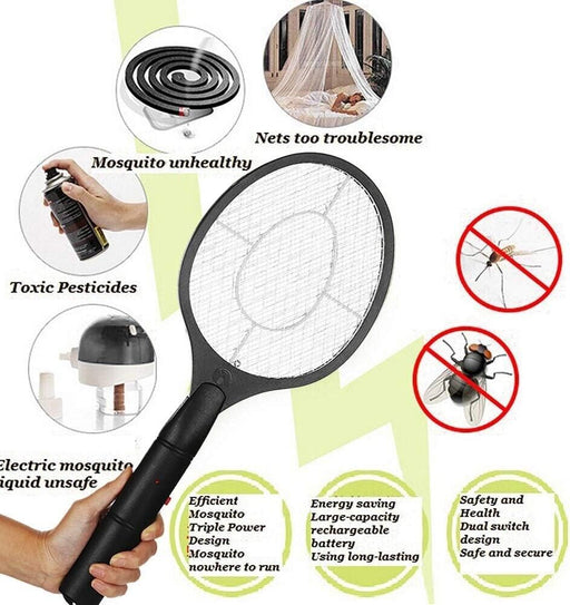 Electric Bug Zapper Tennis Racket Mosquito Fly Swatter Insect Killer Battery