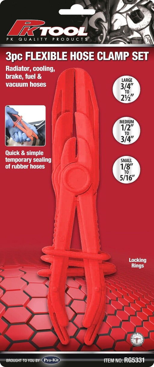 View full detailsPK TOOLS Flexible 3 Piece Radiator Hose Pinch Off Pliers Set 155 185 255mm