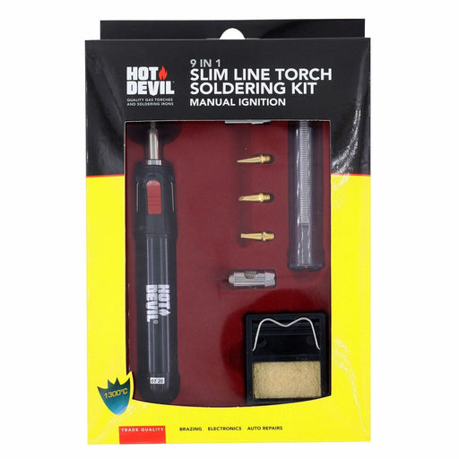 View full detailsHot Devil Soldering & Torch Kit 9 in 1 Slimline HT1937K