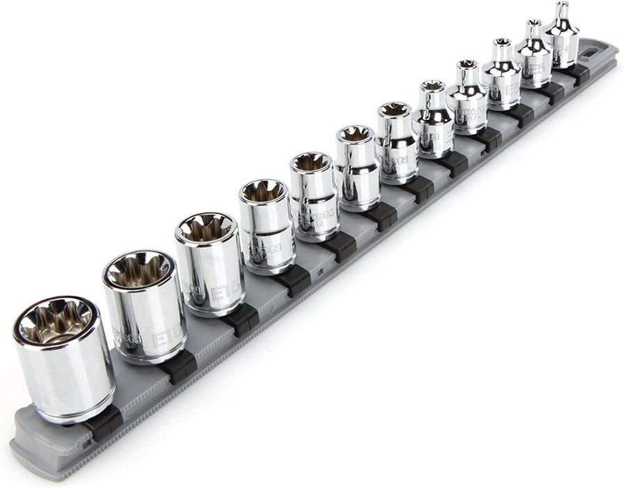 11-Piece Female Torx Star Socket Set External E Type E4-E20 3/8" 1/4" Drive Rail