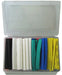 80 assorted pieces in 5 colors2.0 x 75mm 16pc, 2.5 x 75mm 16pc, 3.5 x 75mm 10pc, 5.0 x 75mm 10pc 6.0 x 75mm 8pc, 7.0 x 75mm 8pc, 10 x 75mm 6pc, 13 x 75mm 6pc Easily shrinks with a Heat Gun or other heat source.