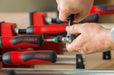 The large, perfectly parallel jaw faces are characteristic of the original BESSEY K Body REVO. It allows easy clamping and spreading of sensitive surfaces and right angles, even round and pointed work pieces exactly parallel to each other. And the best thing is: thanks to their extra-large contact surfaces, the original BESSEY K Body REVO are universally applicable – even behind and to the side of the high-quality profiled rail. This allows you to clamp in locations that conventional screw clamps are unable to reach. That's guaranteed!