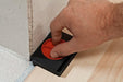 - Set up is fast and simple. Inserted between the wall and the first row of flooring, the distance to the wall can be set simply by turning the red dial. When the installation work is finished, the spacer is easy to remove; just rotate the dial to release the pressure
