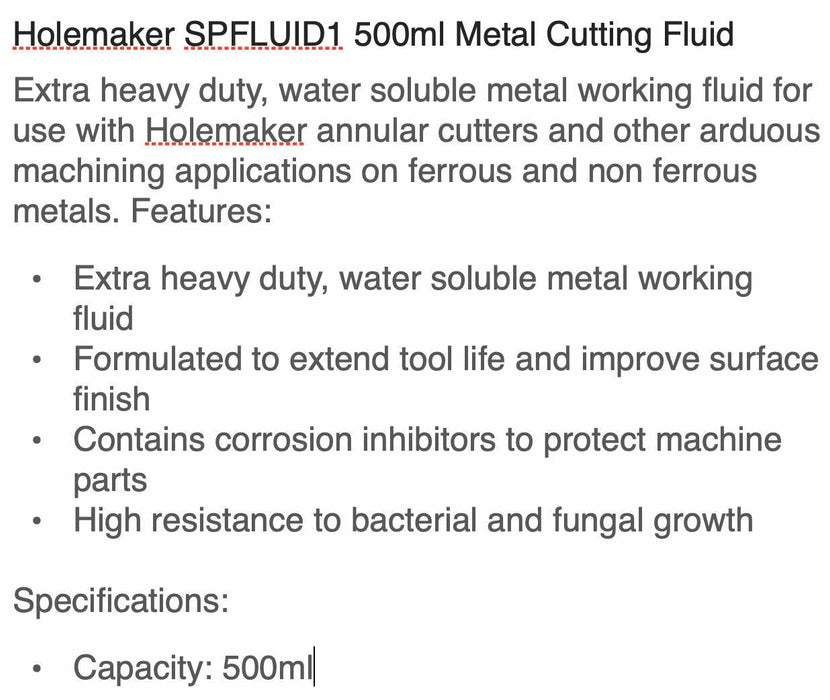 - Use with Holemaker annular cutters and other arduous machining applications on ferrous and non ferrous metals. ;