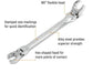 - Flex head wrench ends to access restricted fasteners