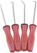 - 4 PIECE MINIATURE PICK SET - Includes: Scratch Awl, Mini Offset Hook, Mini Full Hook, Mini 90° Hook