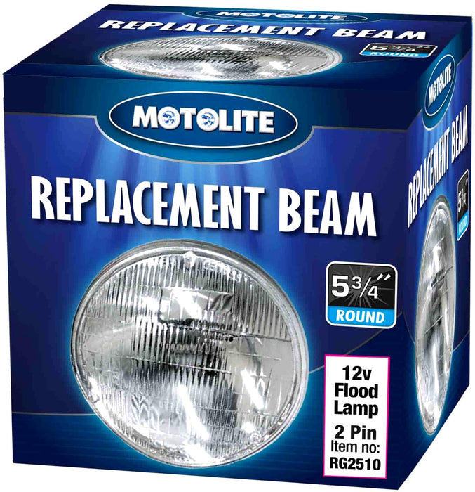 Motolite 12V 80W Flood Lamp Sealed Beam - 5-3/4 Inch Block Pattern Lens