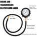 - ENGINE AND TRANSMISSION OIL PRESSURE TEST AND DIAGNOSTIC: This engine transmission oil pressure tester kit is used for measuring oil pressure on lubrication system quickly and accurately. The oil pressure gauge readings assist to diagnose if there are following problems: blocking oil strainer or oil filter, broken pressure-limiting valve spring, poorly working oil pump, low/high oil viscosity, blocking lubrication oil channel, blocking oil filter core and by-pass valve is difficult to open etc.